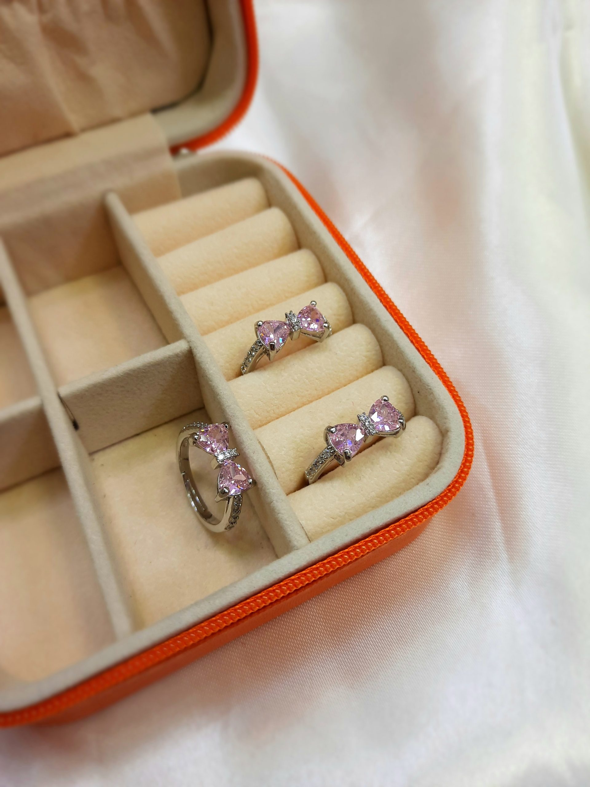 خانه بدلیجات انگشتر پاپیون نگین صورتی کد۶