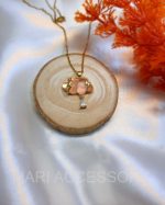 گردنبند حلقه گل نگین صورتی کد۱۳