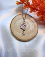 گردنبند ماه و قلب نگین صورتی کد۱۸